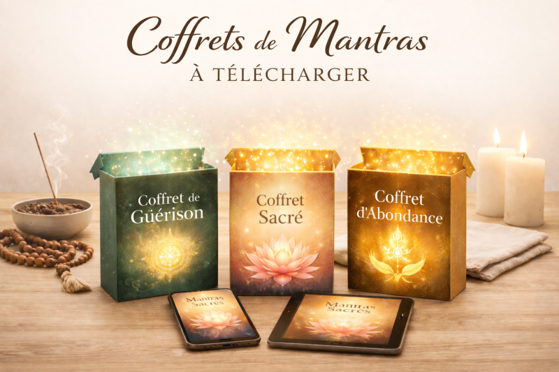 Les coffrets vous invitent à réciter les Mantras en toute autonomie, à en comprendre le sens profond et à les pratiquer en conscience. Méditations guidées et contenus complémentaires vous accompagnent dans ces coffrets, conçus pour éveiller des énergies harmonieuses et soutenir votre équilibre intérieur.